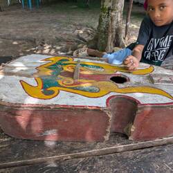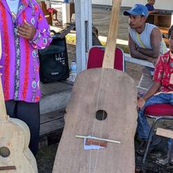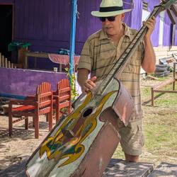 Band almost rocking, and with home made instruments. Guitar and double bass made from plywood and a few nails. Not sure what they use for strings but Caroline pointed out not many cats around!