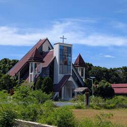 This island has big Christ figure (like Rio) and unusually large churches. Apparently whee Christianity "landed" in the area. Explains why this is the first place we have seen pigs in Indonesia. Local word for pigs is Barbey- short for BBQ?