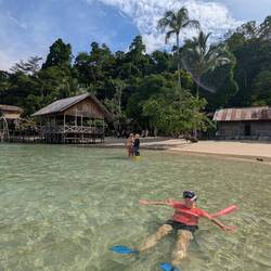 70$ AUD per night, inc food. Fly from Makassar to Nabire. 2 hours in taxi, 45 minutes on a speed boat. Dead easy. P