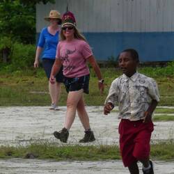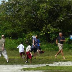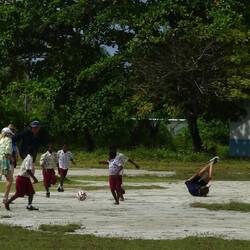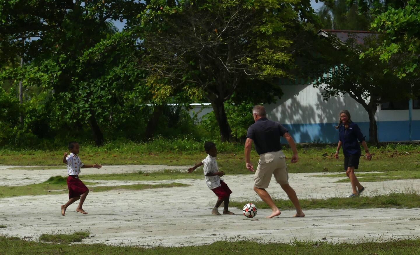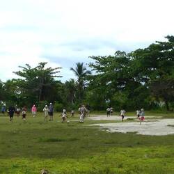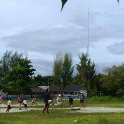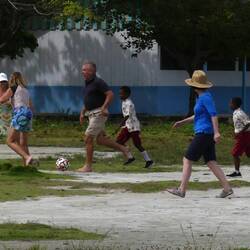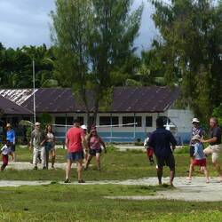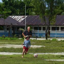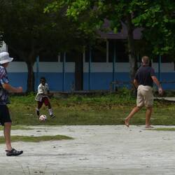 Walk around the village - a few pet lorikeets and surprisingly good birds including a cockatoo. Plant a few mangroves, play the junior school at football, quick swim and back to the boat for 11am.
