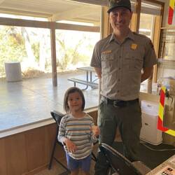 Stattdessen noch ein kurzer Stopp am Visitor Center, schließlich hatte FF sich mit seinem Ranger Buch echt viel Mühe gegeben und fleissig alles notiert und angekreuzt, was er im Park entdeckt hatte. Dafür wurde er dann auch zum Junior Ranger ernannt und die Plakette dann auch von einem echten Ranger überreicht. Da war jemandem der Stolz schon anzumerken.