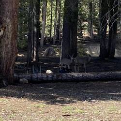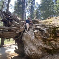 Herausragende Exemplare schauten wir uns zunächst auf einem Spaziergang um eine Lichtung herum an. Dieser war nur 1.5 Kilometer lang, unser heutiges Tagespensum erlaubte zur allgemeinen Erleichterung auch nicht über die Bewanderung des John Muir Trails mit mehreren 100 Kilometern Länge nachzudenken. Es verdeutlich allerdings die schiere Größe der beiden zusammengeschlossenen Parks, von denen mit ca. 2.000 Kilometern Wanderwegen nur ein kleiner Teil in der klassischen Form touristisch erschlossen ist.