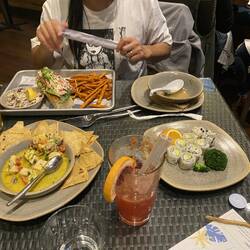 Stattdessen etwas Entschleunigung auf der Strecke und ein Abschiedsessen im Städtchen San Mateo, nur wenige Fahrminuten vor dem Ende unserer Strecke. Dorthin gelangten wir über die sehenswerte Hayward Bridge, allerdings dann auch der ersten gebührenpflichtigen Fahrstrecke während der gesamten Reise. Damit sollte ich mich später noch beschäftigen (18 USD, die von Hertz aber unbürokratisch abgebucht wurden). Ein, soweit wir schon befugt waren dies zu beurteilen, typisches kalifornisches Städtchen mit wuseliger Fußgängerzone in der Strassenbands spielten und sich ein Restaurant an das nächste reihte. Unseres hieß Pacific Catch und hatte ein ok-preisiges Angebot an koreanischen Rippchen, Sushi für FF und Hummer-Sandwich für Miss I. Ein schöner Abschluss und danach dann gleich in Richtung Flughafen. Dort die Trennung! Klingt allerdings dramatischer als es war, lediglich die Familie mit allem Gepäck am internationalen Terminal abgeworfen in der Hoffnung, dass wir bis ich den Wagen zurückgegeben hatte eingecheckt und unser Gepäck schon losgeworden seien.