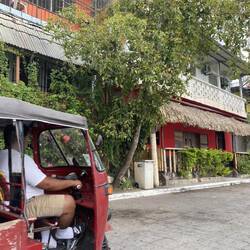 Nach anderthalb Stunden Fahrt überquerten wir die Brücke und befanden uns auf der äußeren Ringstraße der Isla de Flores. Wobei dies nicht die Kölner Ringausmasse hat (weder von der Asi-Dichte noch den geographischen Ausmassen, dies war der Teil bis zu dem unser Minibus vorfahren durfte, da der Rest der Insel nur mit TukTuk, Motorrädern oder PKW befahren werden durfte. Was aber nicht weiter schlimm war, unser Hotel lag nur c. 200 Meter weit entfernt. Sowieso hatte man die Insel innerhalb von 20 Minuten ohne Eile umrundet.