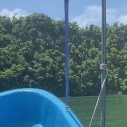 Nachdem wir den ganzen Tag über Glück mit dem Wetter gehabt hatten (ja, ich spreche von kein Regen und die Bullenhitze in Livingston deute ich rückblickend zumindest euphemistisch als schönes Wetter;-) wurden wir bei der Einfahrt in die hoteleigene Marina dann noch mit einem wunderschönen Regenbogen belohnt.