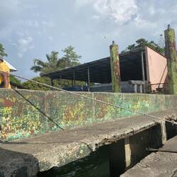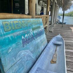 Ansonsten freuten wir uns aber schon sehr auf den Tag. Der Skipper sprach zwar nur ein paar Brocken Englisch, aber irgendwie sollten wir die Kommunikation schon hinbekommen und so hieß es mit nur wenig Verspätung: Leinen los und erstmal ab in Richtung See, oder wie wir Seebären sagen nach rechts in Richtung El Castillo. Dieses Fort (Castillo de San Felipe de Lara) hatten seinerzeit die Spanier an der schmalsten Stelle im Übergang von See zu Fluss gebaut. Eine überschaubar große Verteidigungsanlage mit schöner Gartenanlage. Da man dort allerdings Wert auf Masken legte, die wir tatsächlich mal zu Hause gelassen hatte, begnügten wir uns mit der Aussicht vom Wasser aus, was uns sowieso empfohlen wurde und gewannen daher etwas mehr Zeit um zumindest ein kleines Stück des in seiner Fläche mit dem Bodensee vergleichbaren Izabal-See zu erkunden. Doch unser eigentliches Ziel lag ja in entgegengesetzter Richtung (maritime Fachsprache: links rum). Also ein kleines Stück zurück, kurz dem Hotel, der Bierbrauer-Villa und der Brücke gewunken an der uns erst zwei Tage zuvor Don Miguel abgesetzt hatte. Vorbei an Frauen mit kleinen Kindern die sich vom fleissig grüßenden FF nur kurz vom Wäschewaschen im See abhalten liessen um zurück zu winken. Und nach wenigen Minuten plötzlich Stille, nur das leise blubbernde Geräusch des Außenbordmotors, der langsam durch ein Meer aus Wasserhyazinthen auf einen Mangrovenwald zusteuerte in dem dutzende bis hunderte Vögel brüteten und sich von uns kaum stören liessen. Wenige hundert Meter weiter eine Kanal an dem sich ein anderer wohlhabender Einheimischer mit einem Privatzoo mit Affengehege, Leguanen und Papageien niedergelassen hatte.