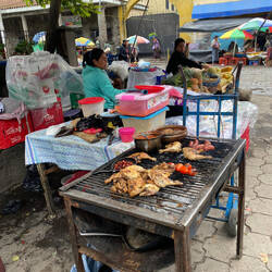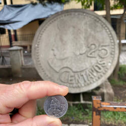Etwas leichtere Kost war dann der Spaziergang über den Markt zurück zum Boot. Dabei kamen wir an der Darstellung einer überdimensionalen 25-Centavos-Münze vorbei. Der Hintergrund bestand darin, dass ein junges Mädchen aus dem Ort (und die Nachbarin unseres Führers) in den 70er Jahren einen Wettbewerb gewonnen hatte und als Preis mit ihrem Konterfei auf der Münze verewigt wurde. Mehr hat sie dann auch nicht dafür bekommen. Die Moral von der Geschichte wäre damit, dass es besser ist fremdes Geld zu besitzen als sich darauf wiederzufinden. Doch zumindest kurzzeitig nahm es dann doch noch ein gutes Ende, da sich der Sohn Ende der 2010er Jahre beschwerte und der Staat der inzwischen alten Dame zumindest eine kleine Leibrente gewährte. Besser spät als nie!