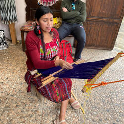 Nach dieser ersten Station ging es zu einer weiteren Kooperative, in der 25 Frauen aus der Gemeinde sich zusammengetan hatten um ausschließlich mit Naturprodukten zu spinnen, färben und zu weben. Den Herstellungsprozess vom Säubern der Baumwolle zu sehen und sich vorzustellen, wieviel Zeit und Mühe in einem kleinen Stück Stoff steckt, war enorm beeindruckend. Und selbst wenn die auf industrieller Basis gefertigten Stoffe auf der Kao San Road von Panajachel vielleicht noch etwas stärker strahlten, konnte ich Miss I und FF nicht lange widersprechen als es darum ging sich zwei Erinnerungsstücke mit nach Hause zu nehmen.