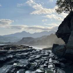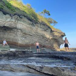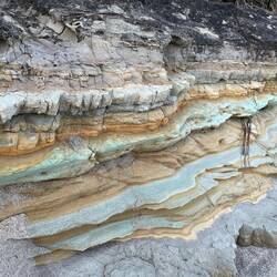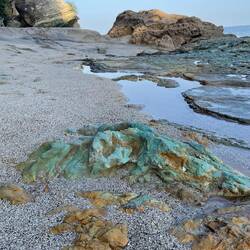 Wir nutzen die Ebbe für einen ausgedehnten Spaziergang und am Ende der Bucht werden wir von außergewöhnlichen Felsformationen überrascht. Ein schönes Farbspiel in Türkis bis grün und gelb.Lue lisää