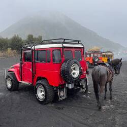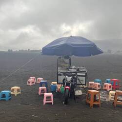 Das Wetter spielt auch in Indonesien verrückt. Theoretisch hätten wir bei schönstem Wetter die Aussicht auf die Vulkane genossen, stattdessen steigen wir bei strömenden Regen die Treppe zum Krater hinauf. Es ist wolkenverhangen, teils neblig und die Sicht beschränkt. Es hat teilweise etwas Mystisches und solche Bilder kann nicht jeder haben. Der Vorteil bei diesem Wetter ist ganz klar: wir sind beinah die einzigen hoch oben unterwegs.