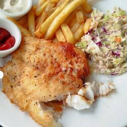 1. Steinbutt gegrillt, Bernaise und Pommes