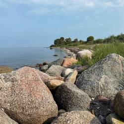 Wunderschöner kleiner Hafen bzw. vielmehr wunderschöne Küste direkt am Hafen mit glasklarem Wasser, Bewuchs & Baby-Seesternen, schöner Strand mit netten Grillplätzen