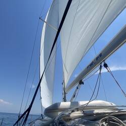 Segeln bei nachlassendem Scirocco diesmal im Rücken und kleinem Reparaturstop in Trogir (Anker!); Geschwindigkeitsrekord des Törn! 😎