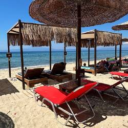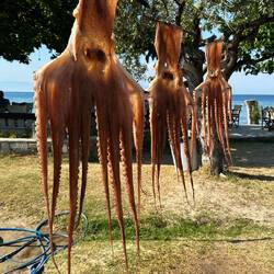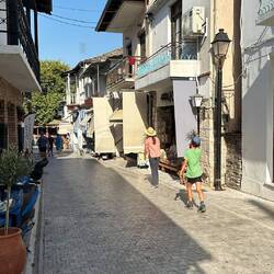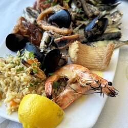 Heute gab es für mich verpflichtend die Teilnahme an der Familienolympiade, danach Einkaufen im Supermarkt (den vergessenen Sonnenhut ersetzen, einen faulen Strandtag, und dann Abendessen in PrinosMeer informatie