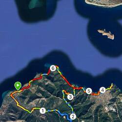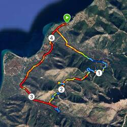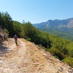 Durch Olivenhaine rollen wir uns gemütlich warm, bevor wir den steilen Anstieg nach Sotiras in Angriff nehmen. Ein paar Höhenmeter weiter erreichenMeer informatie