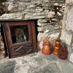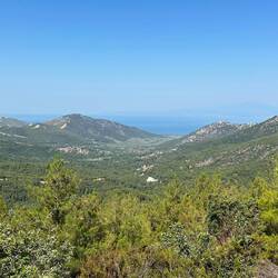 Vom Hotel geht’s über Rachoni & Agios Georgios ins Inselinnere. Nach ca. 400 Hm erreichen wir eine kleine Kirche mitMeer informatie