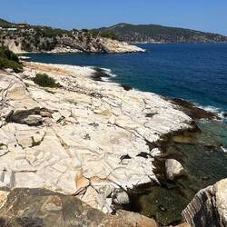 Heute wandern wir im Süden der Insel von Theologos nach Kastro – durch schroffe, teils karstige Landschaft, lichteMeer informatie