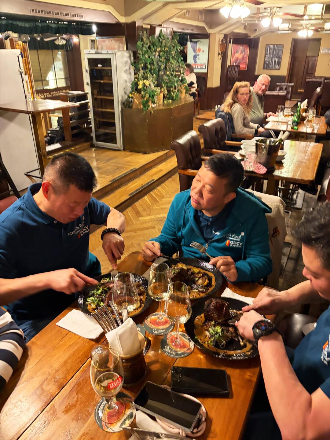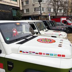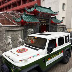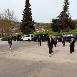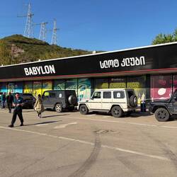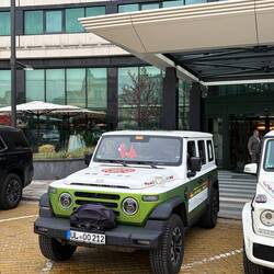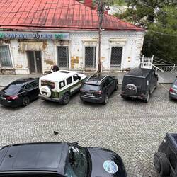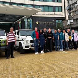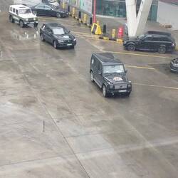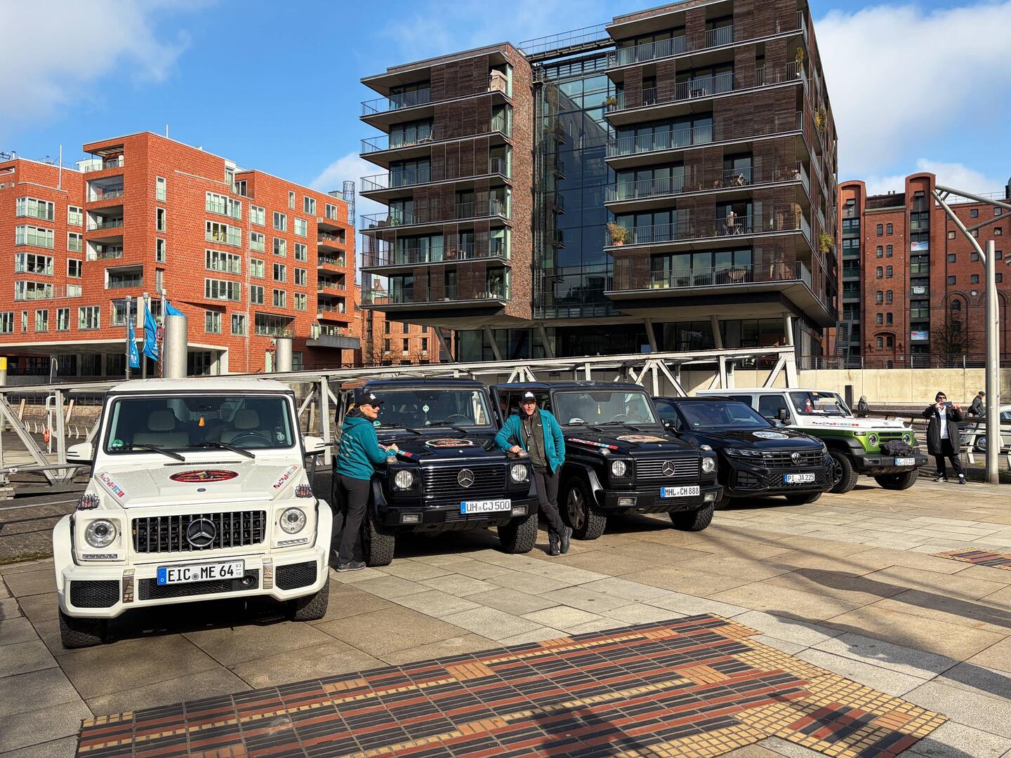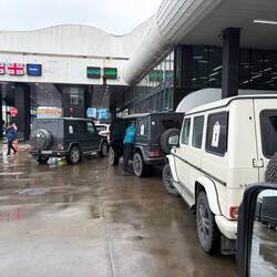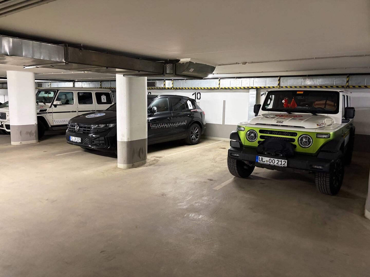Angekommen in Budapest. In der Hotel Tiefgarage wird es eng. Die G-Klassen sind zu hoch. Mal sehen wie wir die eine morgen wieder raus kriegen. Die anderen müssen draußen bleiben.