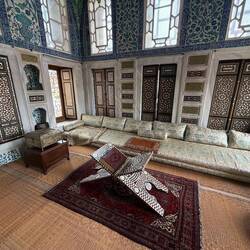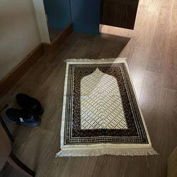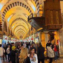 Nach dem Abendessen noch ein Rundgang durch die Stadt. Gebetsteppich gehört zum Hotelzimmer.