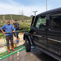 Am Autobahn Rastplatz noch schnell das Auto waschen lassen.
