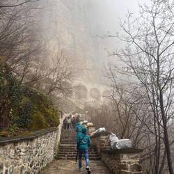 Ein ehemaliges Kloster in den Bergen besichtigt. Vom Parkplatz fahren Shuttlebusse auf 1300m, dann noch über StufenLæs mere