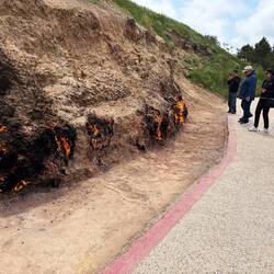 Die brennenden Berge, seit 4000 Jahren brennt es in den Hügeln, Löschversuche blieben erfolglos, den durch den hohen Druck mit dem das Gas durch die Erde gepresst wird entzündet es sich immerLæs mere