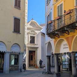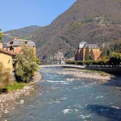 Aus Bergamo raus. Ich bin mir sicher, dass mein Piaggio zu Hause am "töipelen" ist, so viele seiner Verwandten treffe ich unterwegs.