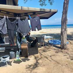 Heut haben wir uns einen seit 2022 verlassenen Campingplatz direkt an einer einsamen Bucht zum übernachten ausgesucht