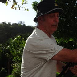 Ein eher unpopulärer Sport. Fette, verfressene Raupen aus den Bäumen holen. Mr. Brown aus dem Grillschrank schaut zu.