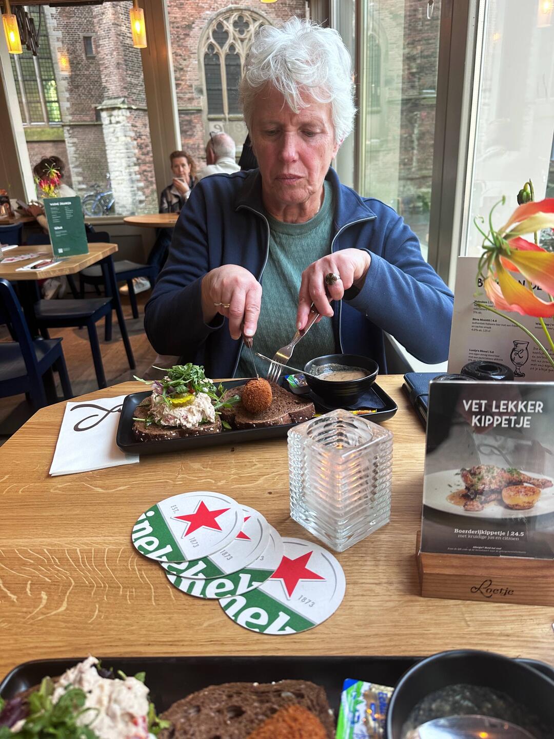 Na de treinreis even een moment voor Loetje om te lunchen