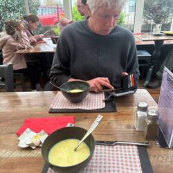 Terwijl ds Aart Jan nog met zijn afscheidspreek bezig is moeten wij vertrekken van onze Airbnb.