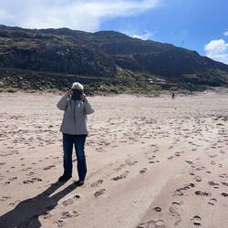 We zien een strand en dan natuurlijk even stoppen, een strand aan de Atlantische oceaan