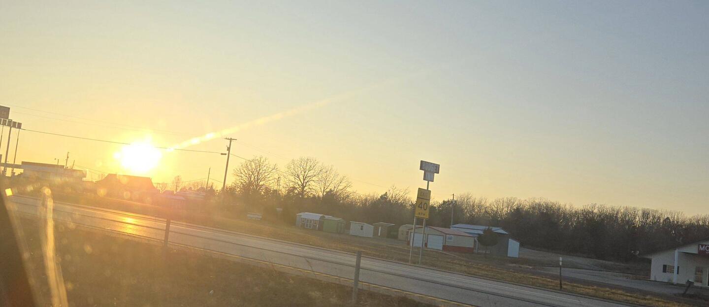 On the way to our fabulous one sleep in Missouri.. .We got a nice surprise when I was driving... I didn't ruin the rim. I got you, Steven.. good call on you and t