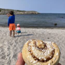 Nach einer zweiten trockenen Nacht im Zelt ☺️ ging’s für uns heute weiter nach Karlskrona. Wir frühstückten in einer schönen Bageri in Kivik, um uns anschließend einen Strand im StenshuvudOkumaya devam et