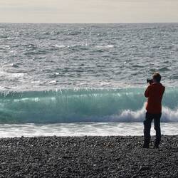 We walk back to explore the right-hand side of the beach and after a while see a huge mass on the beach. We say to each other that it looks like a beached whale from afar, but immediately realise that sounds pretty unrealistic. When we get a bit closer, we spot a huge vertebra, turns out it's a whale carcass after all! As we approach the carcass the intense odour of rotting flesh becomes more prominent. Nevertheless, it's quite baffling to stand next to such an extraordinary creature. The size of the bones is simply huge!
