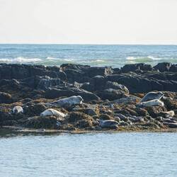Blown away by what we just saw, we continue a bit further in search of some more seals. At the end of the beach, we see another group resting on the rocks and swimming in the water.