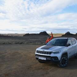 After collecting our bags we pick up our rental car just outside the airport. We requested a 4 wheel drive Suzuki Jimny-type car to be able to drive the highland roads. Anything more ambitious didn't really fit into our financial planning. However, when arriving at the office we were pleased to hear that we received an upgrade from the Jimny as they found out that the cars aren't as suited for Icelandic roads as they thought... hmm. Very pleased we take place in our new Jeep Compass Trail Hawk. Before us, it clocked off at 7000km and apart from a tiny scratch at the right back it looked like a brand new car.