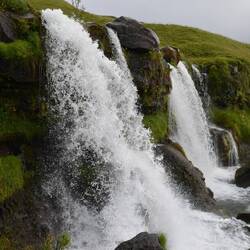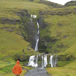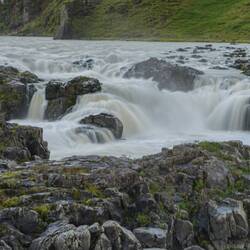 Originally, we planned a visit to the LAVA Museum in Hvolsvöllur, but because of the many points of interest this day we had to discard this as well. Despite this, the museum seems interesting and even has some modern features like trembling ground built in. In the town we stopped for fuel and a short sanitary stop. We swap the main ring road for road 261 to drive to Gluggafoss, another waterfall. You'll quickly notice that -foss means waterfall in Icelandic. This one has the main fall coming down in a small rock valley, but later forms another wider waterfall at the bottom before turning into a creek.