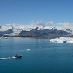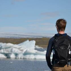We explore the lake from near the parking area. There are trails that walk (partly) along the side of the lake, but we're in luck: most of the icebergs are on the south side of the lake where the parking area and river to the ocean are. Every now and then there are boat tours that take you between the ice.