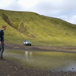 We advance slowly but enjoy the environment we're in. As we approach our first flooded part of the road we stop and go out to inspect. Very cautious, executing everything that we've read about driving in the highlands. It's only a small pool and we make it across just fine. As a matter of fact, even a normal car would be able to do this. Nevertheless, for us it feels like the adventure of the highlands has truly started!