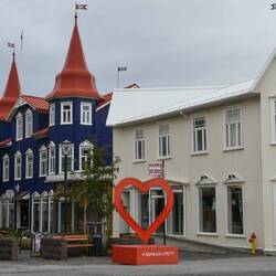 We wake up to a grey and rainy morning. After breakfast we go back to our room to prepare our route through the city. Most of the highlights are not that far apart so we can connect them on foot. Only a museum, Perlan, is a bit further out of town. It consists of 6 water circular tanks that are nowadays exhibitions rooms. From the roof you have a nice view of the city. We decide to first finish all the landmarks in the city and before going to the volcano stop by Perlan.