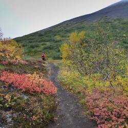 We start our steep climb on one of the hillsides to get to the top of Bláhnjúkur. We have to tread carefully because the path can be rather slippery and is steep. Luckily, we don't mind at all to take a rest every now and then to turn around and soak in this fairy-tale landscape.