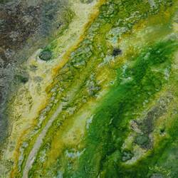 Just before we reach the bottom of the hill we pass along another strange sight. A rock, extending out of the hill has yet another completely different colour: deep dark green.