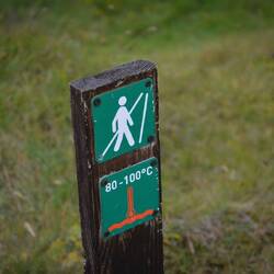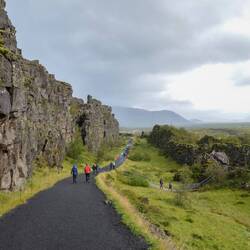 When we arrive at the parking lot, we’re lucky to find a free spot. The government has opened various parking lots in the area to accommodate the high number of locals and tourists. Most of these area are full of cars. According to a sign at the beginning of the trail we have to pay a parking fee here as well. Just like in Snaefellsness we try the website, but our bank app requires us to verify the transaction with a card reader and the card itself. The parking fee itself was also higher than anything we’ve seen before, so that’s maybe the drawback from higher prices: people can’t just pay them quickly with their mobile.