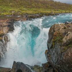 We only found reference of this waterfall in one guidebook, and are a bit confused by the name. If you Google Brúarfoss you'll only find the famous blue waterfall we did the day before. So, it's a well-planned search for coordinates where this waterfall should be located.