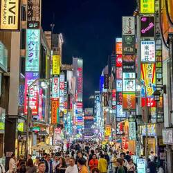 We take the subway line in the direction of Shibuya district. This section of town is known for its fashion and culture. But you also find the world-famous Shibuya-scramble crossing here; the pedestrian crossing where up to 3000 people can cross each time the light turns green.
