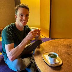Having refilled our energy levels, we continue our day to the last district of the day: shinjuku. We enter the area from the south via Gyoen Park. A smaller, but entirely different, park than Yoyogi. It's gorgeous with the tall skyscrapers sticking out behind and extremely well maintained. We can see gardeners working and even the walkways are free of leaves or branches. In the park are three tea houses and we manage to find one that's still open. For the first time, we enjoy a matcha tea inside the tatami floored section of the tea house at little tables.