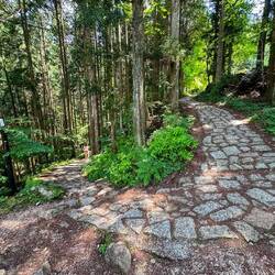 Having relaxed a bit, we walk back downhill and head for the trail that ends near the Dasho-in temple. The same path that our young tourists walked up. By luck, they are joining us not too far behind. Now it's time to see if it really takes "only 30 minutes" to go up...