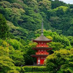The main temple is magnificent! The wooden structure stands sublime in the surrounding forest and the amount of detail that is put into carving out figures is astonishing. With some of the trees reaching their autumn colored leaves it's a truly remarkable place.