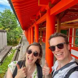 After our lunch, and hopefully not entire disgrace for our eating style, we discover the park. There's a huge statue of a whale next to the museum. We skip the zoo and walk choose the route along a small temple/shrine with some tori gates in front.